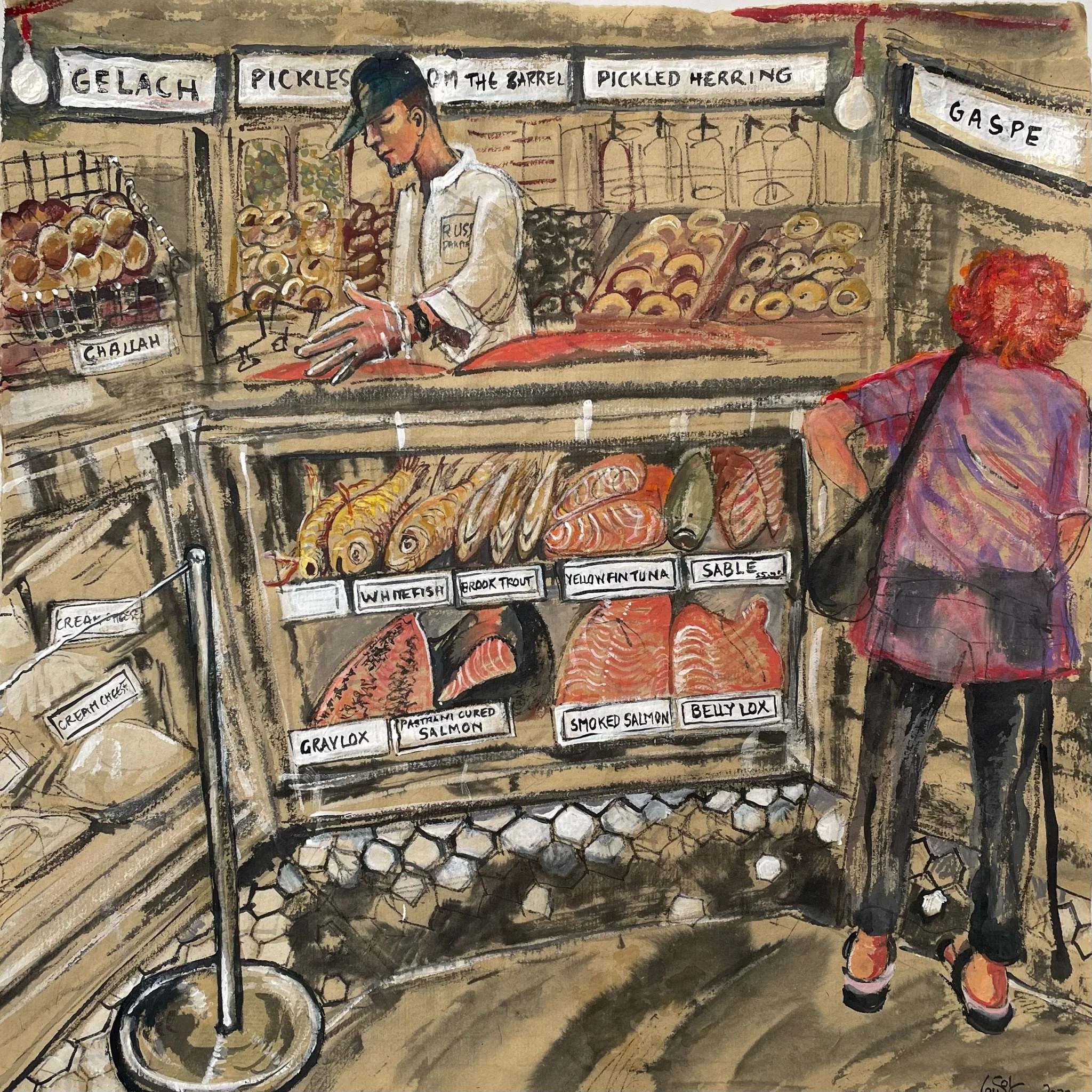 Waiting for lox & cream cheese bagel 2017 Upper East Sideβ¦. Chinese inks & acrylic on bamboo grass paper. 42x46cms